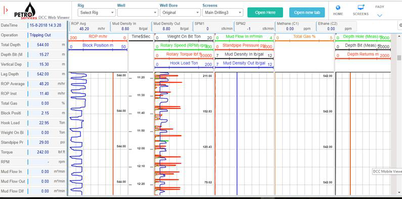 DCC WebViewer is an innovative web-based solution to monitor drilling information in realtime, as well as displaying historical data. Only login to our website from anywhere and from any device, enter your username and password and immediately access your data. DCC WebViewer uses the new HTML5 technology to display it’s contents and draw drilling curves, Unlike most of similar products, DCC WebViewer doesn’t need any plug-ins like Flash, Silverlight, or Java applets to work. Only an HTML5 enabled web browser. Different screens available to display all drilling related information including Main Drilling, Composite Log, Survey, Tripping, etc... .