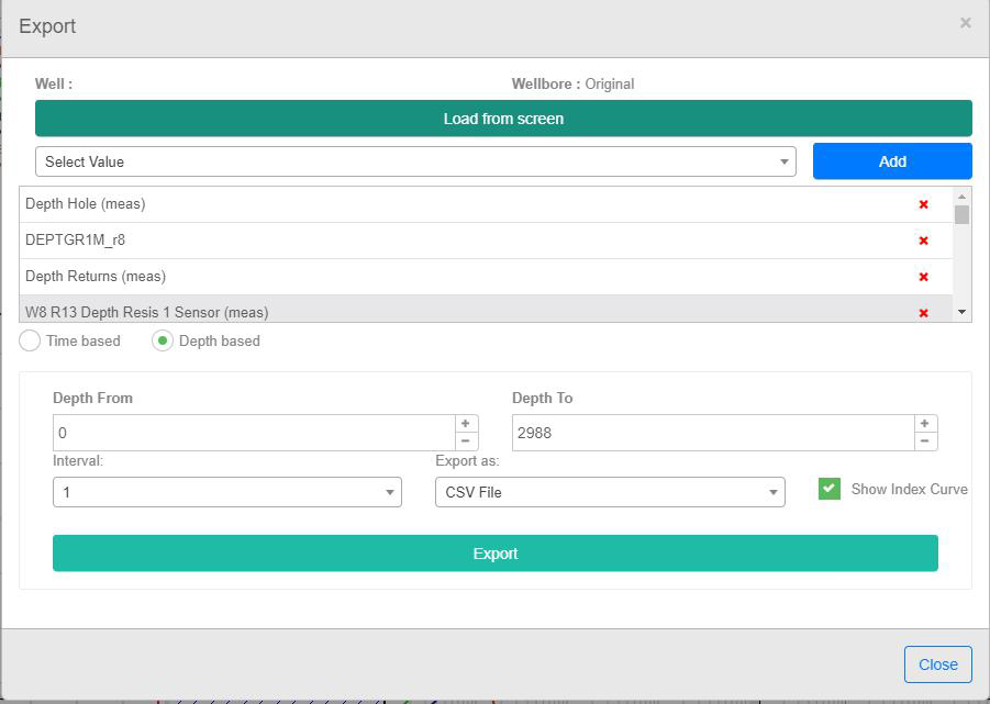Export data anytime, time and depth based easily and quickly to .CSV and .LAS files.